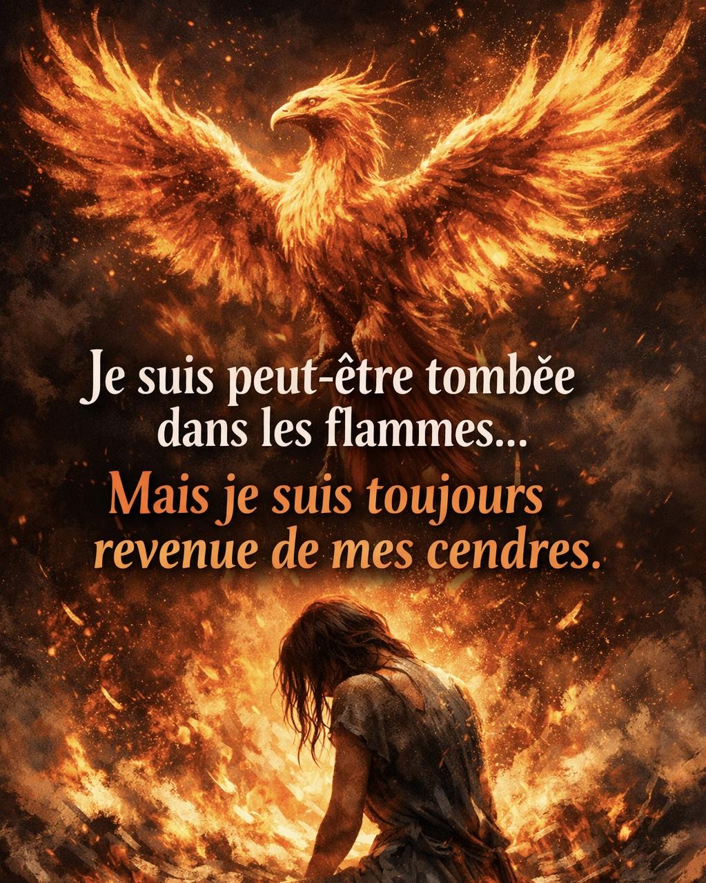 Le phénix 🐦‍🔥 me fascine. Cet oiseau mythique qui, après s’être consumé, renaît de ses propres cendres. Plus fort. Plus lumineux. Plus vivant que jamais. Longtemps, je l’ai vu comme une simple légende. Aujourd’hui, je comprends que c’est un symbole. Parce que moi aussi, j’ai dû tomber. Moi aussi, j’ai dû traverser le feu. Moi aussi, j’ai dû recommencer… encore et encore. Il y a eu des moments d’épuisement. Des moments où tout semblait réduit en cendres. Des moments où abandonner aurait été plus simple. Mais c’est justement là, dans ces instants de doute et de fatigue, que ma force est née. Chaque chute m’a appris. Chaque épreuve m’a forgée. Chaque recommencement m’a rendue plus solide. Renaître, ce n’est pas ne jamais tomber. Renaître, c’est choisir de se relever, coûte que coûte. Aujourd’hui, je sais une chose : Tant qu’il reste une étincelle, il reste de l’espoir. Et tant qu’il reste de l’espoir, il y a une renaissance possible. Je suis peut-être passée par le feu… Mais je ne suis jamais restée dans les cendres. 🔥✨ #Résilience #ForceIntérieure #Renaissance #NeJamaisAbandonner